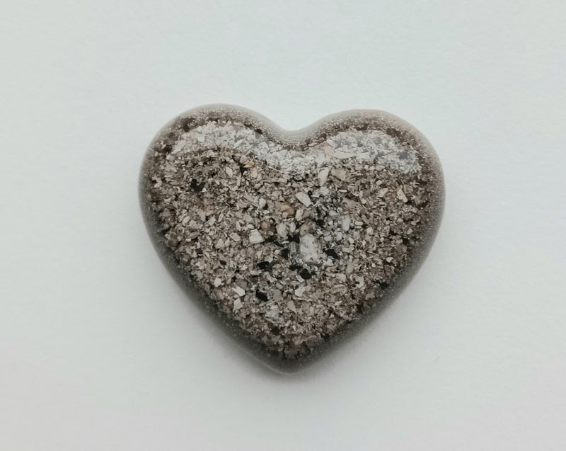 Er is met crematie as veel mogelijk, op verzoek maak ik van crematie hars ook harten met een beetje as of geheel met as omvat in een kunsthars.